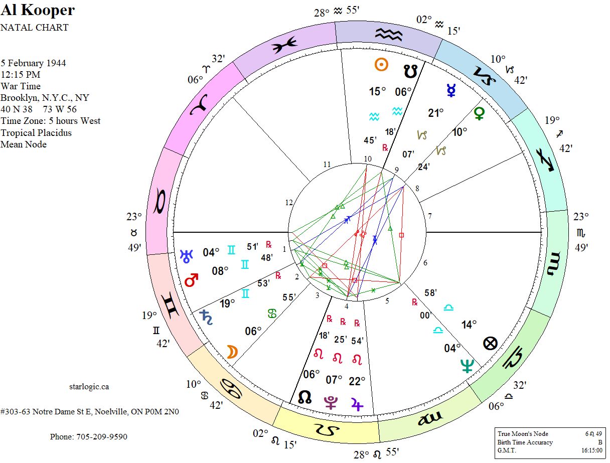 The Sun and Moon in the Rolling Stone chart triggered one half of of Kooper’s Mercury Yod, while the event Moon was inconjunct with Kooper’s Jupiter, the other half of the same Yod. His future fame was made manifest, for sure.