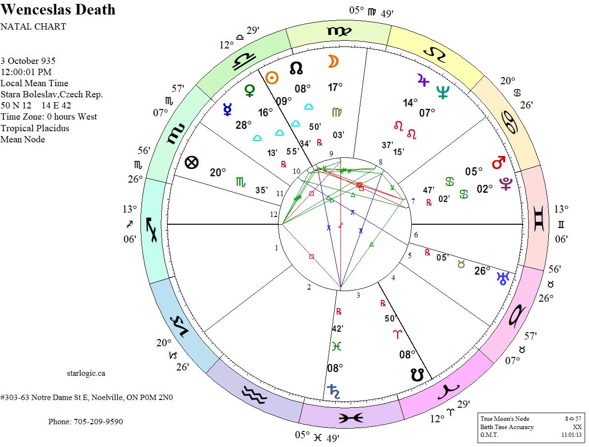The timing of this event is set for noon, local time. Not everything can be taken at face value, except, perhaps, the Yod (Finger of God) pointing at Saturn, formed by inconjuncts to the Sun and Neptune. This shows the dynamic of the fratricide. (There is one other inconjunct linking Mercury and Uranus, which may suggest his becoming a legend in his own lifetime.)