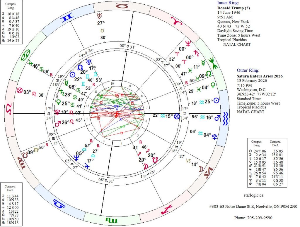 The astrologers who occupy space on YouTube are mostly saying the same thing. They think, when Saturn enters Aries (conjunct Neptune) that things will get very dicey for the 47th President.