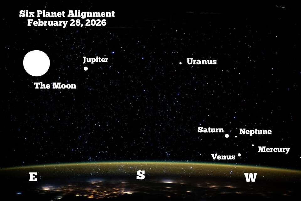 So, if you hope to view this alignment tonight, weather permitting, look west, young man @ 7 pm.