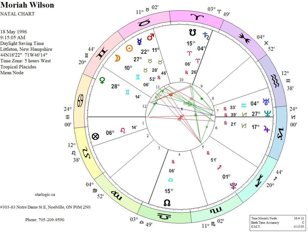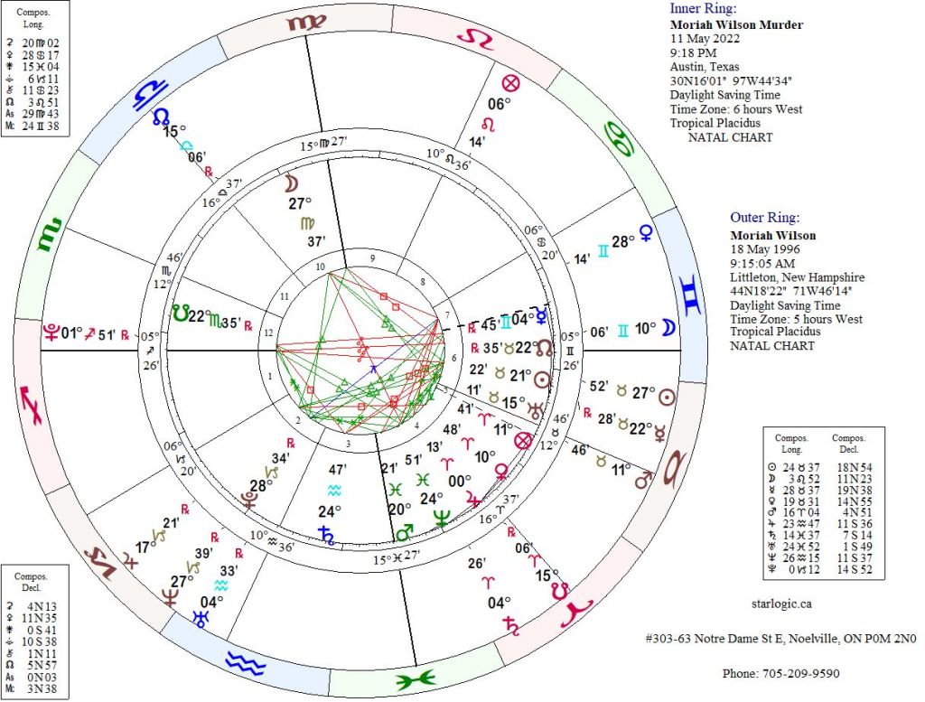 So, why should Moriah be the one to lose her life? The symmetry of her birth and death charts should help us understand why. She was murdered a week before her 26th birthday.