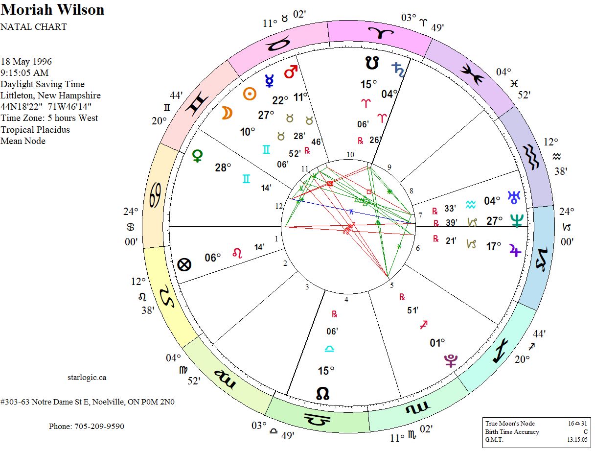 So, why should Moriah be the one to lose her life? The symmetry of her birth and death charts should help us understand why. She was murdered a week before her 26th birthday.