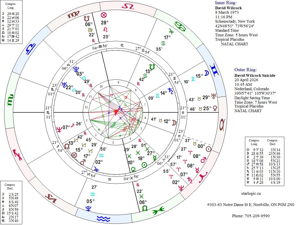 His ‘fatal’ Moon is conjunct his natal Saturn. Ooh. But the Yod (Finger of God) linking his natal Midheaven to his ‘fatal’ Neptune and Pluto means that we cannot take this at face value. In fact, there is a conspiracy theory going around that scientists and UFO specialists are starting to disappear (or apparently die). Just last week it was reported that Nick Pope had died. What is going on?